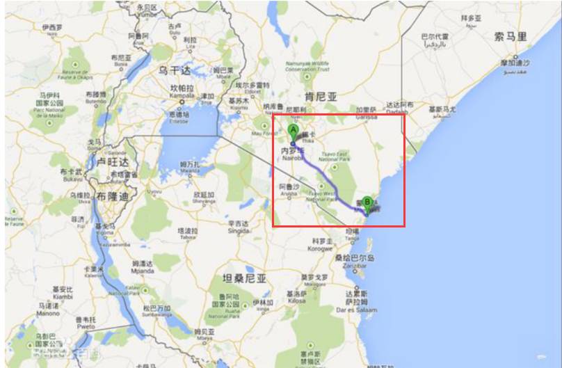 蒙内铁路路线示意图