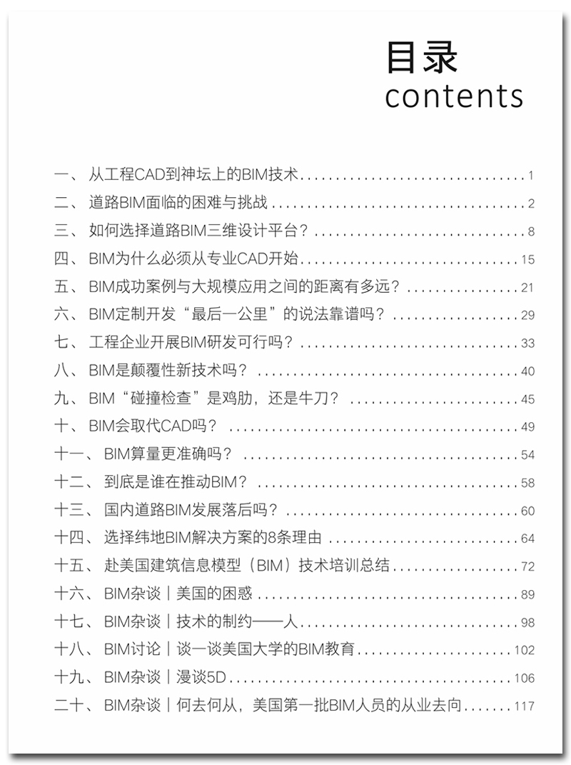 《BIM在路上》基于笔者30余年工程CAD研发经验,以及对道路与交通工程设计理论、方法、标准规范等的深刻理解,从道路专业特点和工程基本设计原理出发,以BIM软件技术研发、典型工程案例、实际工程设计需求等多视角,向您剖析工程BIM技术的核心,阐述我们对BIM的观点与认识,尝试回答上面诸多问题。