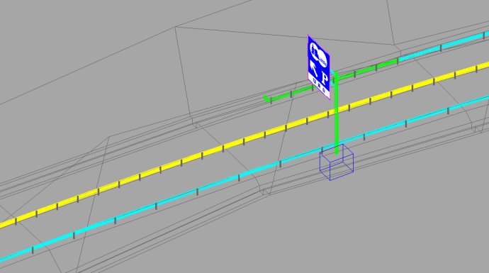 以下是将交通标志模型导入数字仿真平台中的效果。可以真实的反映标志的桩号、版面、结构和基础等各项参数信息。