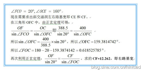 同理,在三角形OCE中,可以求出左路基宽CE=12.215