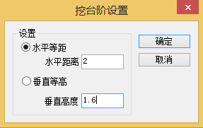 2、挖台阶平台坡度,若为向内侧倾斜时,则输入负值,例如向内侧倾斜“2%”,则输入“-0.02”;