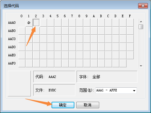 如果在下面这个窗口中没有显示出这些钢筋字符。就选中“第一个格子”,然后点“确定”。