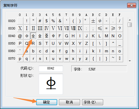 10.然后点击编辑下面的“复制字符”,选择第三个钢筋符号,点击“确定”,然后点击“编辑”下面的“保存字符”。这样我们就创建好了第三个钢筋符号。