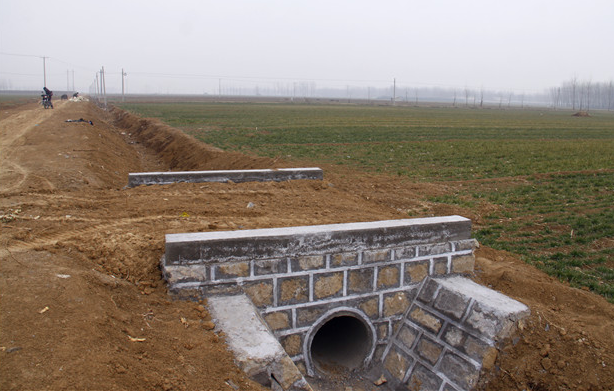 一字墙式,又称端墙式,构造简单,适用于小孔径涵洞,一般在洞口两侧砌筑锥体护坡,以保护路堤伸出端墙外的填土不受冲刷。八字翼墙式对水流阻力小,工程量也小,斜置角度一般习惯采用30度。