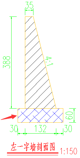 有一些用户反映涵洞一字墙的工程量不知是怎么计算的,今天我们来说一说像上图中这种涵洞的翼墙的设计和工程量的计算方法: