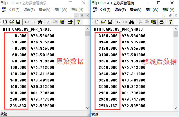 在设计过程中,由于各种原因,有时需要将路线的起终点桩号进行调换,包括平面以及测好的纵、横地面数据。对于平面部分,众所周知,利用纬地的“匝道反向”功能可以快速对桩号进行反向处理,但是如何对纵、横地面数据进行反向处理呢?接下来我将为大家介绍一种快速处理方法。