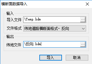3.由图5可知,平面移线后,横断面地面线数据文件(Temp.hdm),桩号倒排已经完成,但是左右侧地面线还没有反过来,需要做换位处理,利用纬地“导入其他横断面数据”功能可以快速完成。具体方法: