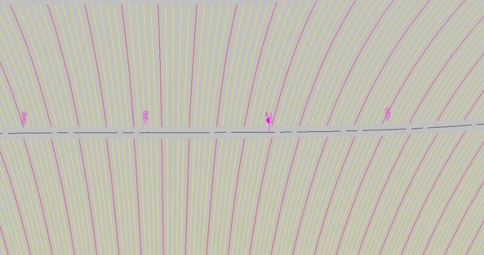 首先依据道路项目路面横坡、宽度等数据绘制出路面等高线,参数设置窗口如下图1,设置等高距、计算精度,等高线绘制颜色以及绘制范围后,即可快速绘出指定桩号范围内的路面等高线图,如下图2。