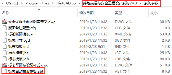 标志自动布设模板文件位于纬地交通工程设计软件安装目录下的系统参数文件夹中,如下图2;该文件可以文本格式或纬地数据编辑器“ehint.exe”打开。