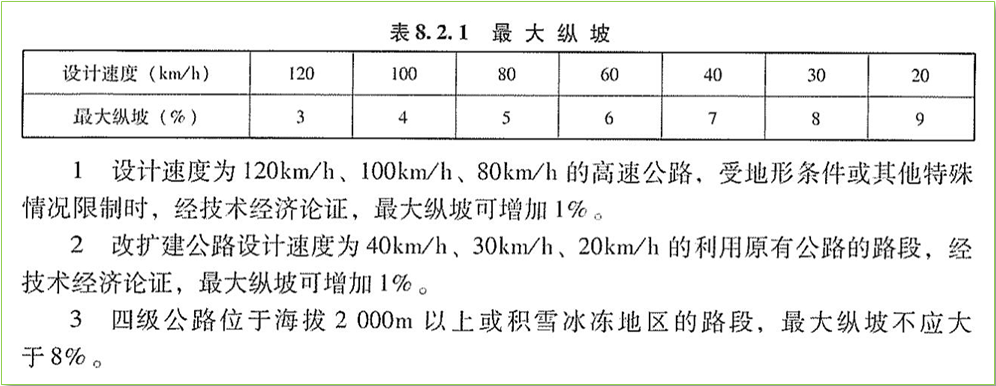 最大纵坡是与设计速度对应地,如下表所列(《规范》表8.2.1)。