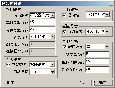 衬砌类型:支持整体式衬砌和复合式衬砌;