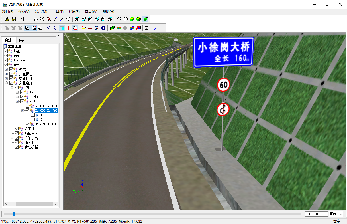 2. 实现道路主体、各类构造物及附属工程等的高精度BIM自动建模,即在各专业、专项设计任务完成的同时,软件可自动构建道路、构造物及附属工程的三维精确模型,模型精度(如空间坐标)完全达到工程施工图设计要求。