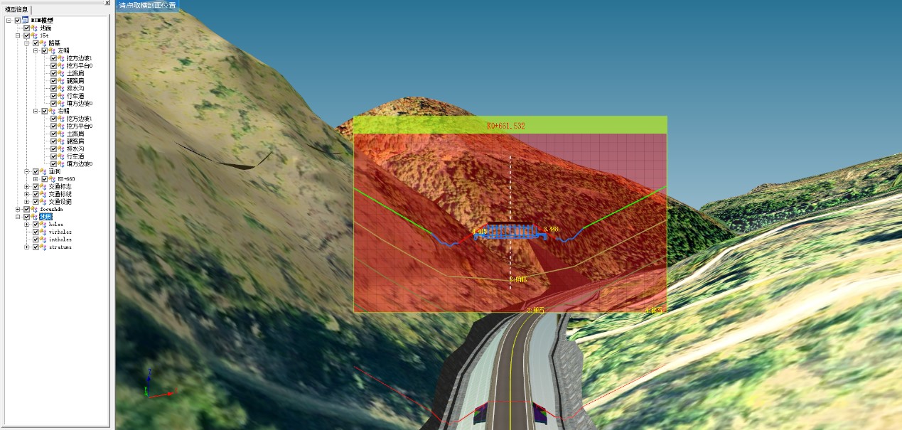 2. 主界面为道路项目BIM模型,用户可根据需要选择模型显示方式、位置、以及加载模型类型等;