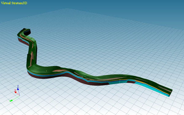 “纬地三维地质CAD系统” 是国内道路工程领域第一套专业的地质三维化处理及应用的软件系统。该软件基于地质勘察、勘探成果数据,利用地质地层数学推演模型和计算机三维图像显示技术构建工程走廊带区域内全三维地质模型。该技术为道路等工程的选线和方案研究提供了直观可视化的地质背景,为公路路基横断面、桥梁、隧道、涵洞通道等设计提供了地质地层资料和依据。该软件改变了以往工程地质成果信息更多依赖地质专业人工根据有限勘察、勘探资料凭经验推演的方式。