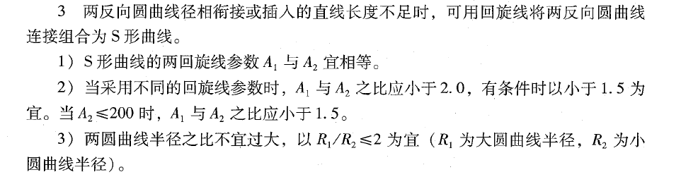 1、“两反向圆曲线”是否有指标限制(半径大小或者圆曲线长度等要求)?