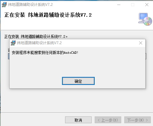 下载了官方纬地道路7.2(64位),win10系统下装了64位AUTOcad2014并已激活,但是安纬地时一直显示安装程序未能搜索到任何版本cad,该如何解决??