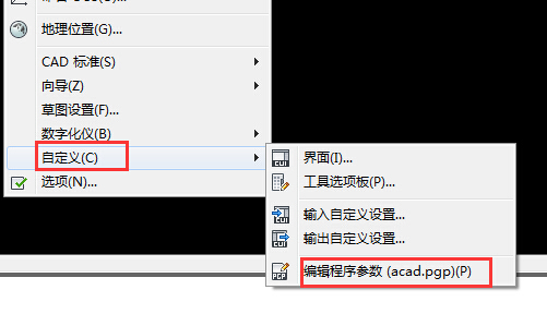 1、cad命令“工具”→“自定义”→“编辑程序参数”,截图如下